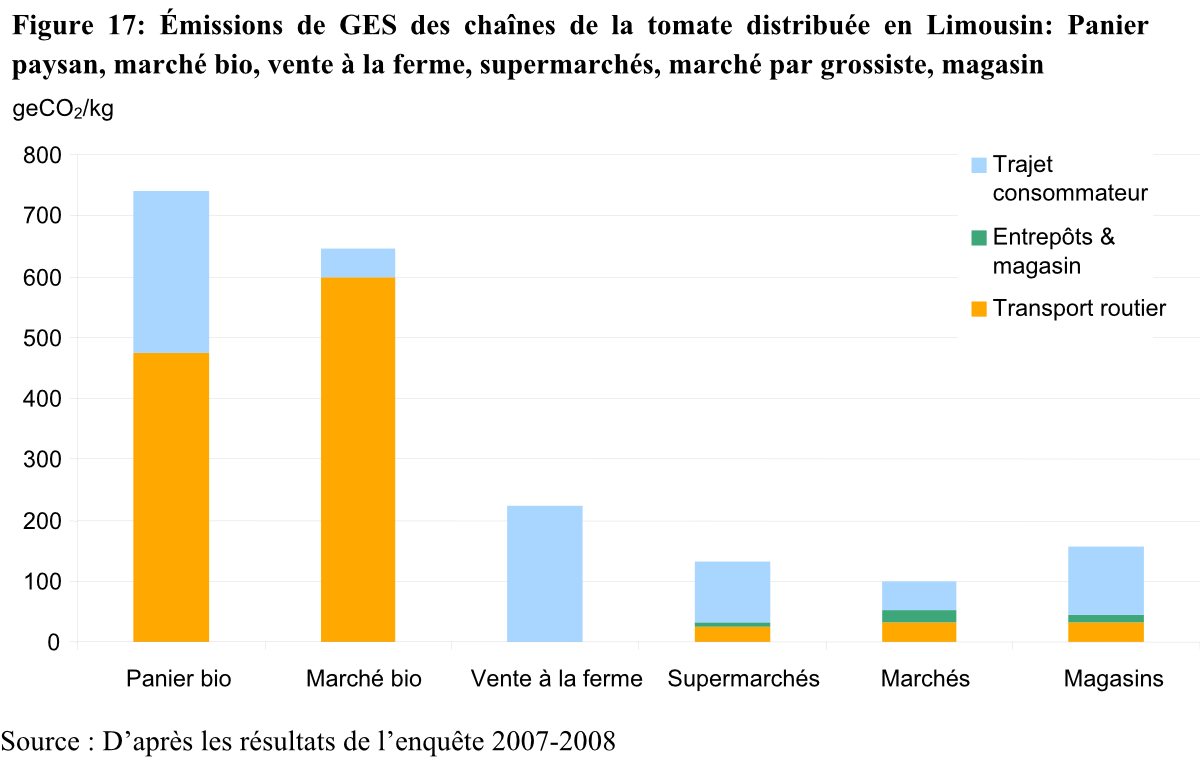 Bilan d’émissions de GES, au périmètre des transports, de la tomate distribuée en Limousin (Rizet et. al, 2008)